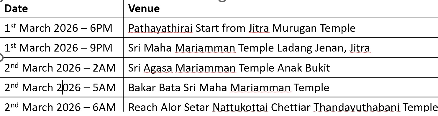 Sri Murugan Temple Jitra, Kedah to Alor Setar Nattukottai Chettiar Thandayuthabani Temple - Masi Magam (2 Days)